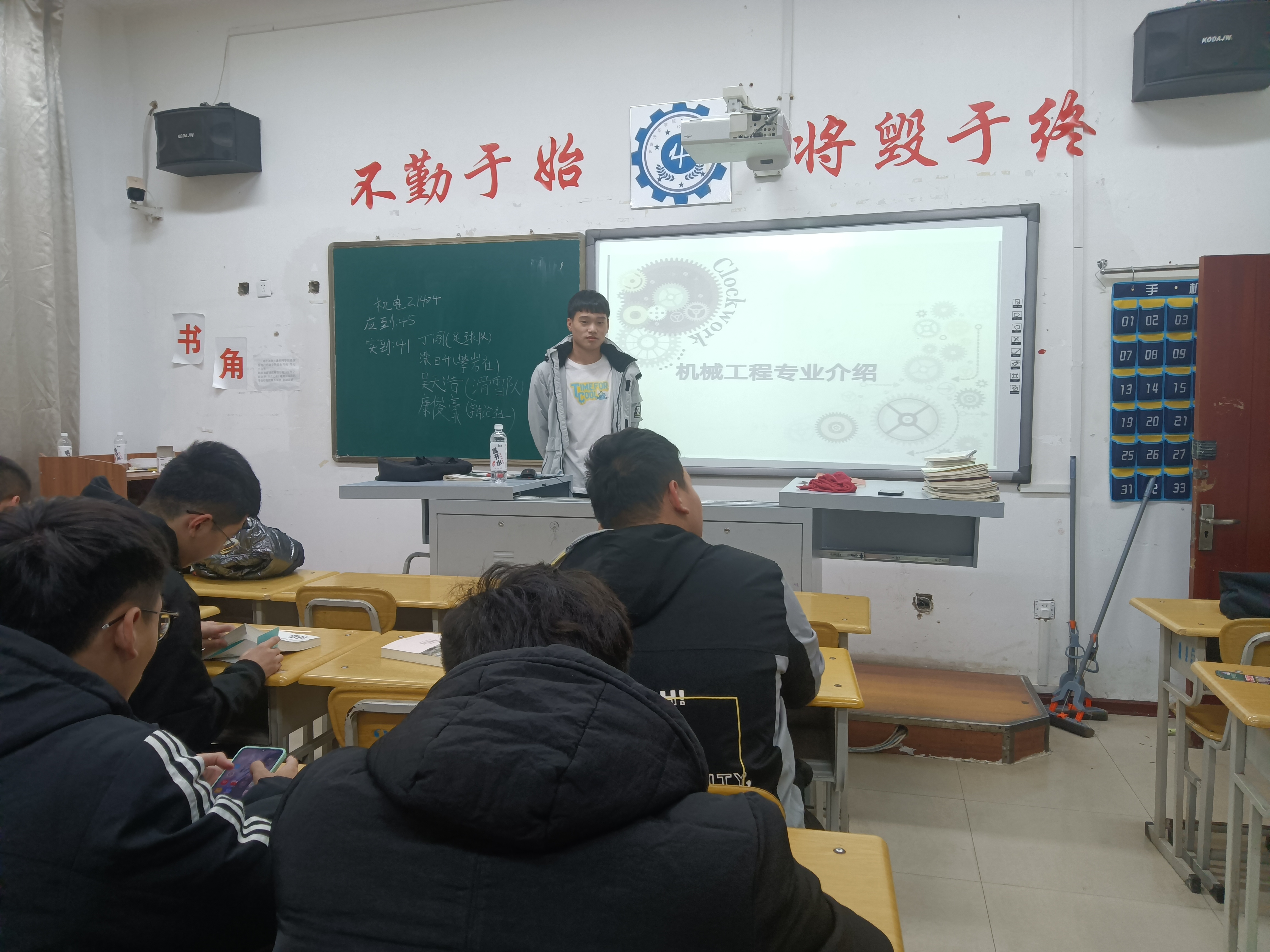 2021年11月3日,汽服六班张哲同学在二教115开展以专业介绍为主题的课前十分钟,参与成员为六班全体成员 。张哲讲述了机械电子工程专业类课程。核心知识领域包括:机械设计基础、机械制造基础、控制理论与技术、传感与检测技术、机电系统设计与控制等。