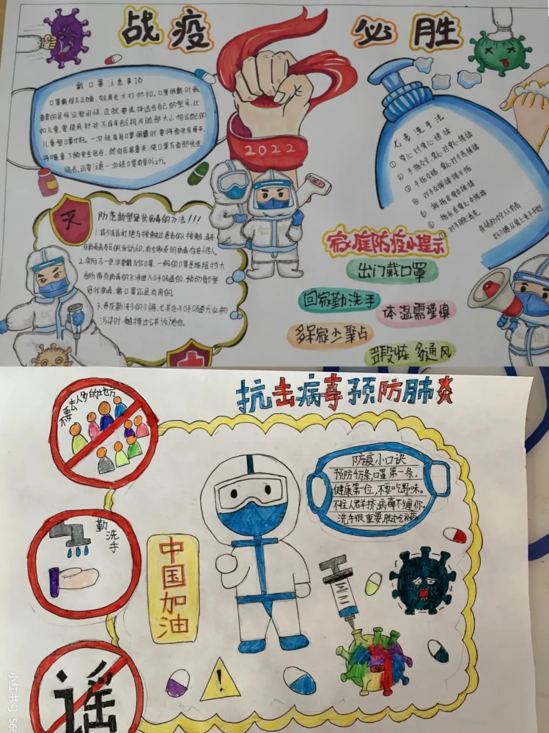 绘画是一种很锻炼耐心的事,所以绘画容易让人有耐心,很容易沉下心来做一件事,能让你的注意力从负面信息和消极想法中转移出去,并且给你积极情绪的体验,来抵御疫情造成的心理压力。小组成员以“防疫”为主题开展绘画活动,为防疫工作者们制作手抄报,宣传防疫活动,即可以调节心态,又支持疫情工作。而在调节心态的同时,也要力所能及的做好防疫工作,努力的去面对生活。在情绪紧张的时候,可以找一些适合自己的调节方法。做一些增强自己掌控感和正向情绪的体验。学会自我调控,不要被消极情绪所左右。