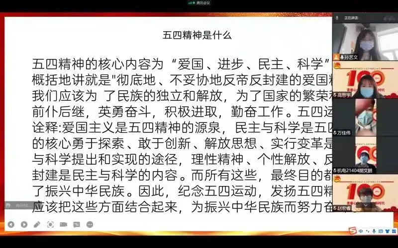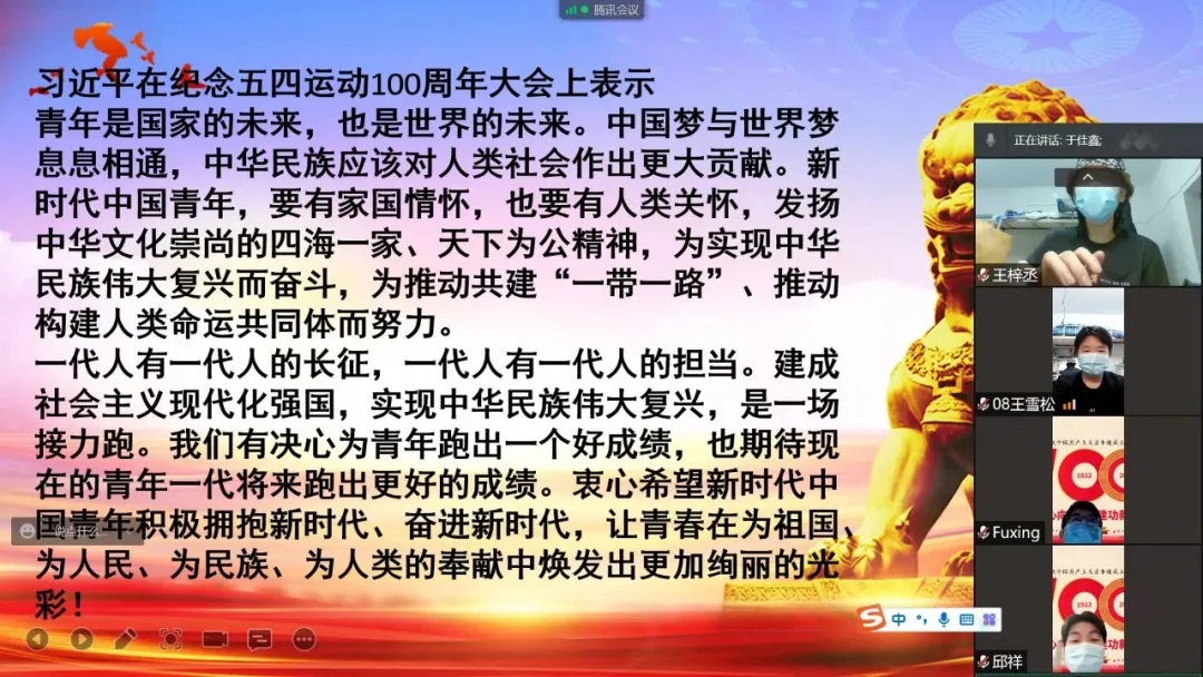 为进一步激励引领广大青年团员大力弘扬以爱国主义为核心的“五四”精神,英国上市公司365于2022年5月4日召开以“传承五四精神,守好青春阵地”为主题的五四专题学习交流会,英国上市公司365全体学生参加。