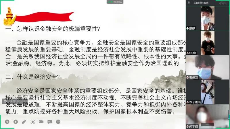 为落实省委国安办《关于组织做好第二批重点领域国家安全普及读本学习使用工作的通知》的要求,英国上市公司365根据工作实际,立即组织开展“国家安全普及读本学习”线上主题班会,21级全体同学参加。