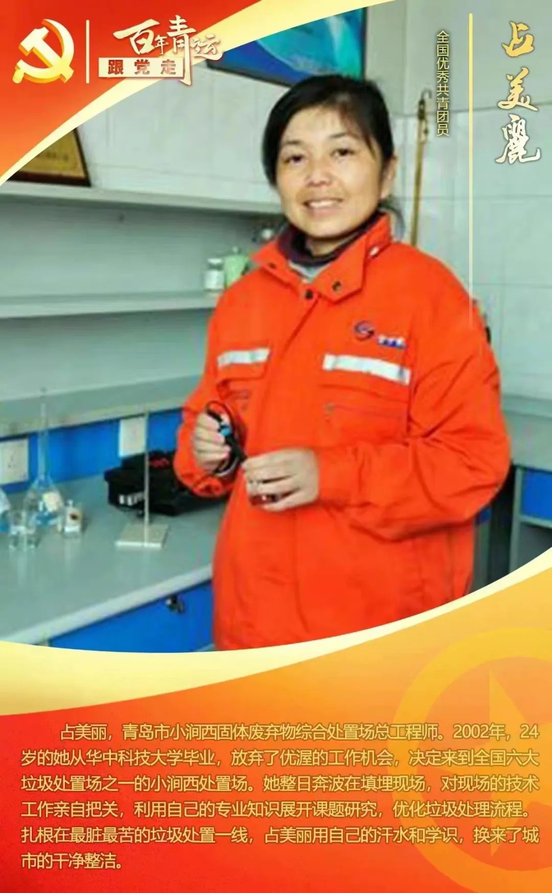 占美丽,青岛市小涧西固体废弃物综合处置场总工程师。2002年24岁的她从华中科技大学毕业,放弃了优渥的工作机会,决定来到全国六大垃圾处置场之一的小涧西处置场。“希望工程”是由团中央、中国青少年发展基金会于1989年发起的以救助贫困地区失学少年儿童为目的的一项公益事业。这一项着眼未来、造福后代、为发展我国基础教育的伟大的工程,它促进了我国农村贫困地区基础教育事业的发展,开辟了一条动员社会力量协助政府办教育的新路。