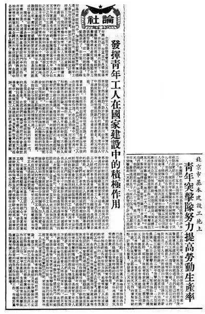 1954年,木工青年突击队18位技术精湛的团员青年,在北京展览馆工地创造了建造的奇迹。此后,每一个重大工程和紧急任务,都少不了奋勇争先的青年突击队的身影。在建设祖国的各个阵线上,团员先锋们挥洒汗水的身影、成为最美的青春印记。