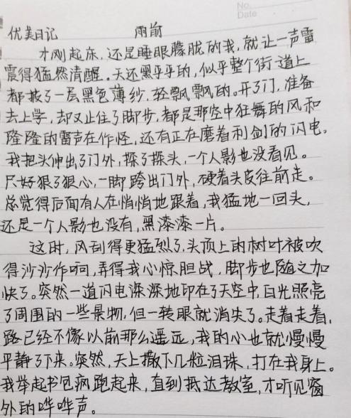 同学们通过照片和日记的形式,把同学自己在家的日常生活状态,一些生活中的闲杂小事、一些学习中遇到的困难和努力,以及自己内心深处的感想记录下来。写日记帮助我们珍藏那些美好的回忆,岁月流逝,当我们翻开日记的时候,往日就会重现。那些美好的事物与岁月总是能让我们欣然一笑,写日记的时候,当然也要有自己的思路,不是随便写记的流水账,要有自己的层次感,写日记不仅仅是备忘,同时也可以积累大量的写作素材,提高我们的文字功底。写日记也是一个长期的过程,需要坚持,长期坚持记日记会让我们懂得如何去坚持,在以后的生活和学习中,我们也会保持这种坚持的精神,它会使我们做到许多以前做不到的事。