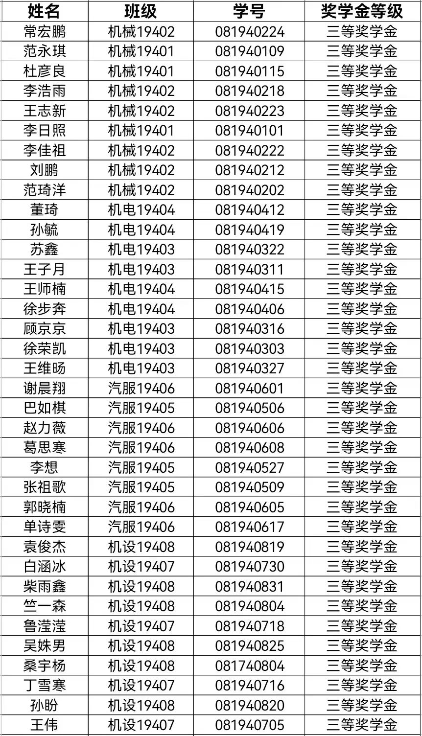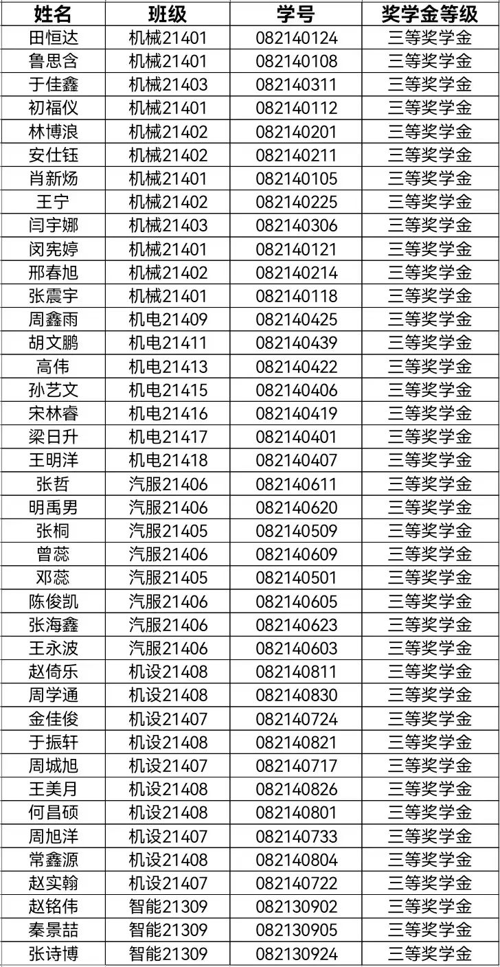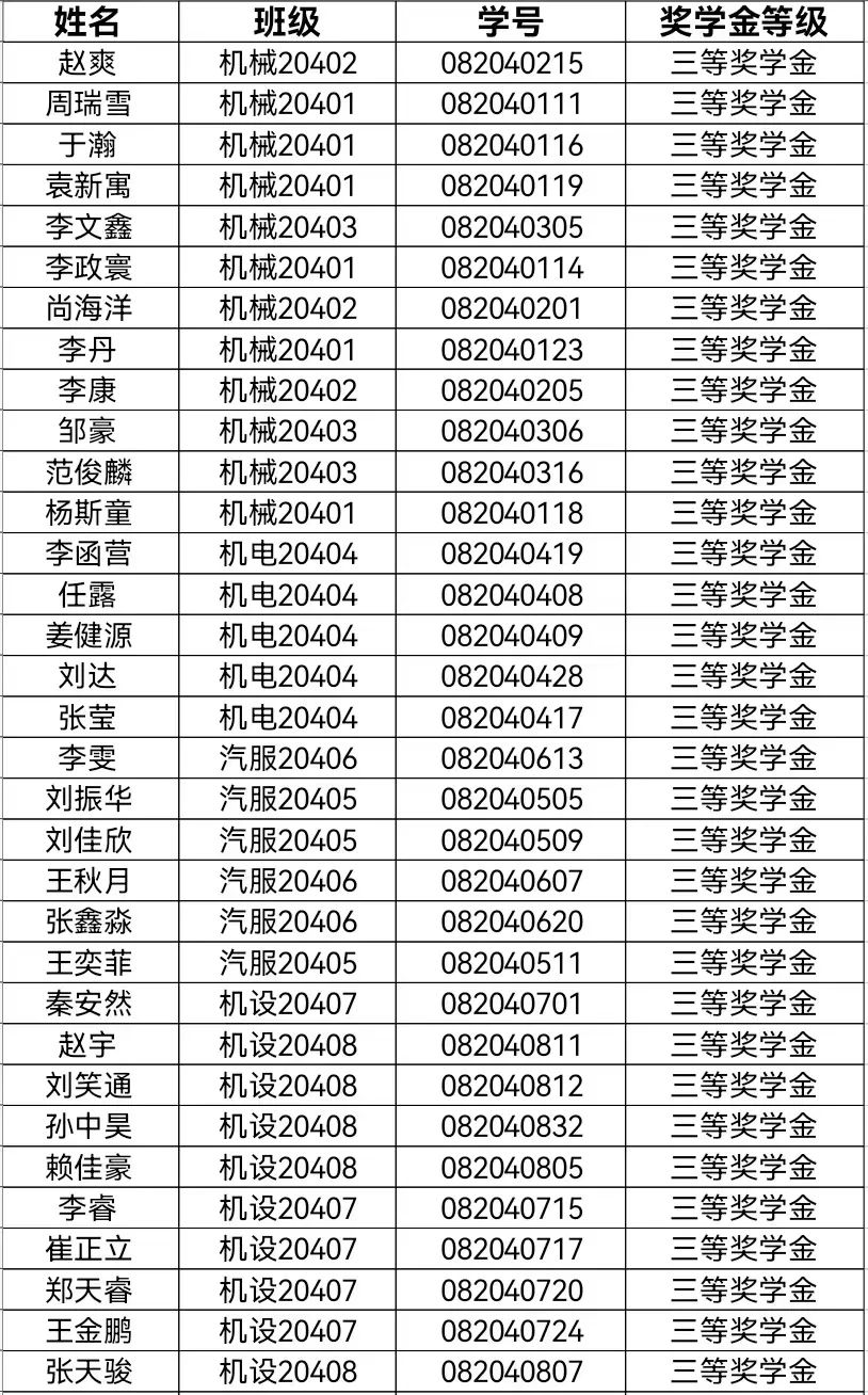 三等奖学金