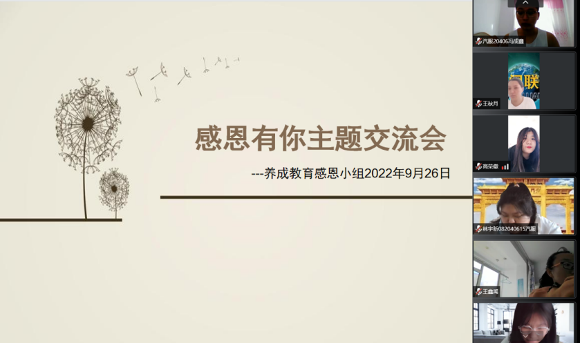感恩,是中华民族的传统美德,是构建社会主义和谐社会的基础,是实现赶超跨越的精神动力。养成教育感恩小组于2022年9月26日开展“感恩有你”的线上活动,为了感恩那些我们生命中的点点滴滴,同时也是让每位学生关爱他人,尊敬师长,与他人和谐共处,懂得孝敬父母、学会知恩,用实际行动践行中华民族的传统美德。