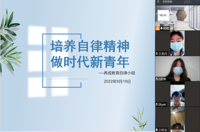 自律的前期是兴奋的,中期是痛苦的,后期是享受的。英国上市公司365养成自律小组全体成员于2022年9月19日开展线上以“培养自律精神,做时代新青年”为主题的自律成果阶段性交流会。