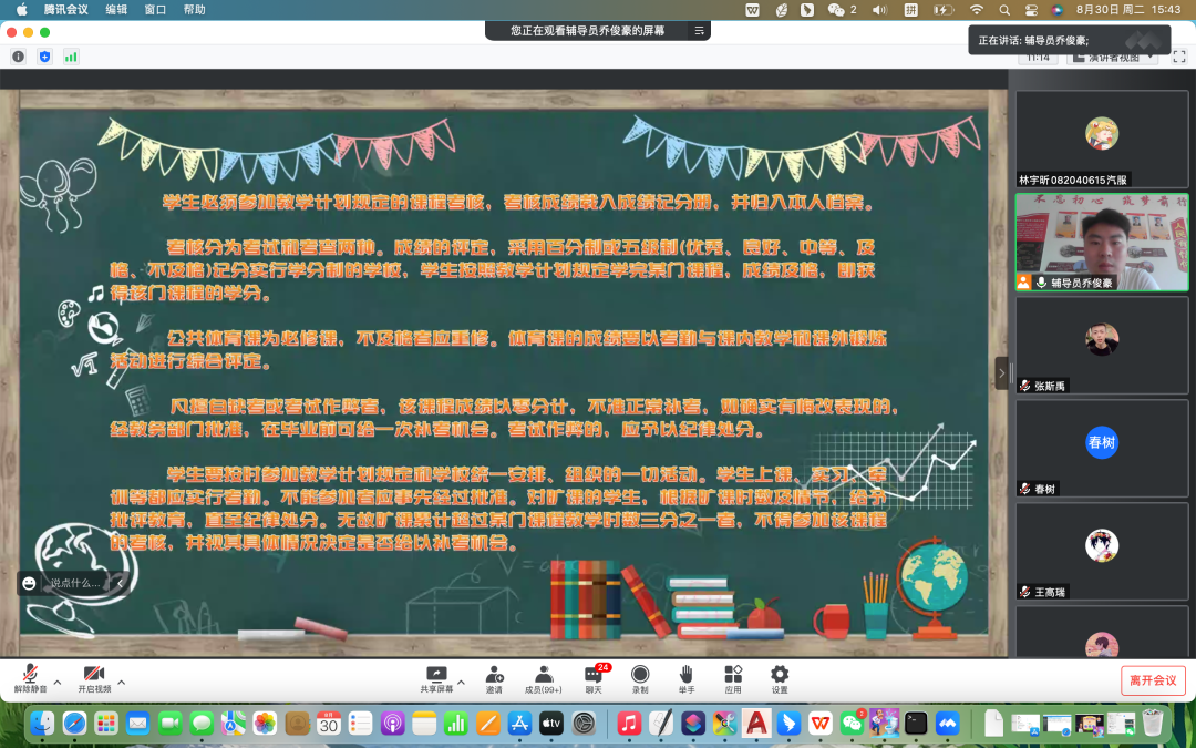 为了让新生更早的适应学校生活,以较短的时间完成由“高中生”向“大学生”的过渡。英国上市公司365于2022年8月30日在线上召开新生入学教育大会。此次会议由新生辅导员乔俊豪主讲,22级全体新生参加。
