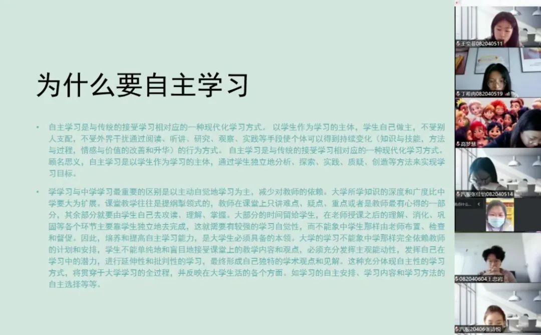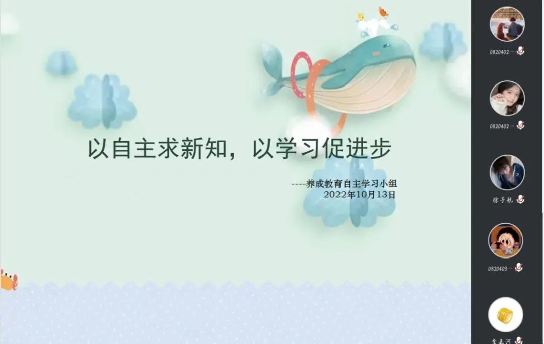 外韧之味,久则可厌;读书之味,愈久愈深。自主学习是指学生个体在学习过程中一种主动而积极自觉的学习行为。自主学习应具备内在学习动机基础上的“想学”;掌握一定的学习策略基础上的“会学”;意志努力基础上的“坚持学”。我院养成教育自主学习小组于2022年10月13日开展“自主学习,我能行”的线上主题活动。