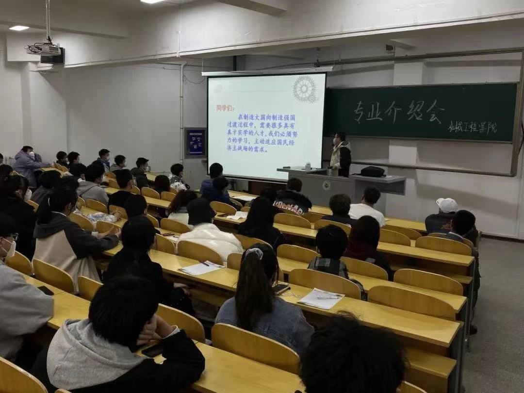 为了让广大新生了解我院专业特色,加强同学们对专业的兴趣,了解机械工程专业的就业方向与专业地位。我院于2022年10月28日于二教216开展了专业介绍会,本次介绍会由苗健伟老师为大家进行讲解。