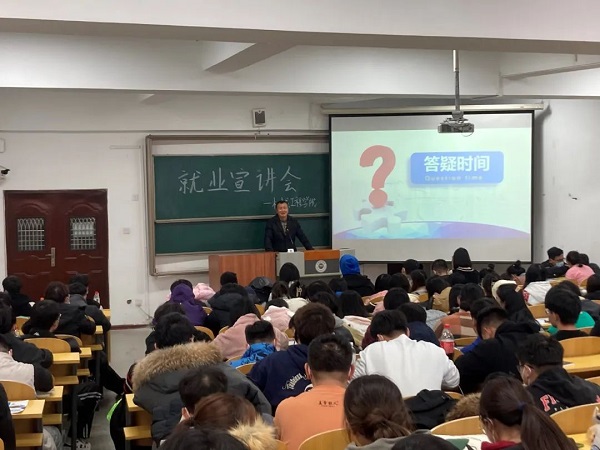 对于大学生来说,就业是每个人都要跨过的一道门槛,也是人生的一个重要转折点。故此次的就业宣讲的召开,为企业招聘优秀人才搭建了平台的同时也为学校毕业生实现就业目标提供了渠道。在当前紧张的就业环境下,愿各位19级学生调整好心态,积极就业,以最佳的状态去迎接最崭新的明天!