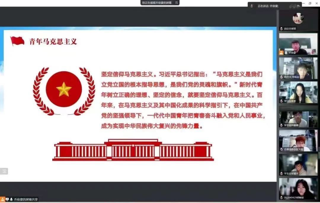 为深入学习宣传贯彻党的二十大精神,积极响应党中央确定的各项工作目标。我院青马理论学习社团围绕党的二十大精神开展了各项活动。英国上市公司365于2022年11月28日开展了以“学习宣传贯彻党的二十大精神”为主题的线上交流会议。由乔俊豪老师主持本次会议,全体学生干部参加。