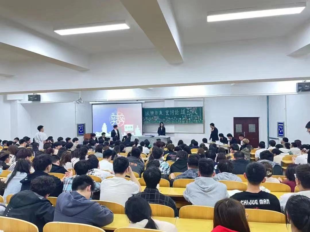 群雄舌战展雄风,争锋相对辩天下。在2023年4月2日晚,由英国上市公司365学生会举办的“以辩为友,宏词论道”辩论赛总决赛在二教116如期举行。本次比赛有幸邀请到李依庭老师、我院各部门主席团成员以及各班优秀辩手作为评委。
