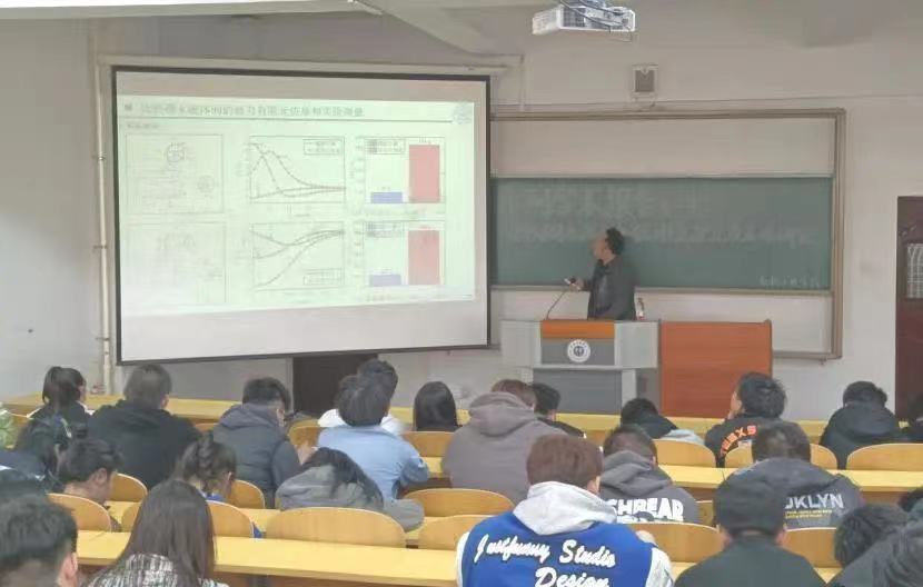 讲座中,裴教授围绕着其团队研究方向钕铁硼永磁体材料展开讲解。主要包括钕铁硼永磁体间磁力和磁刚度的数学理论模型、钕铁硼永磁体间磁力的有限元仿真和实验测量、钕铁硼永磁体间磁力和磁刚度的特性分析、数学理论模型及动力学分析以及永磁体驱动管道磁性微小机器人往复运动研究等方面的系统介绍。其具体内容开拓了参会师生的视野,系统地了解了学术思维和科研具体实施步骤,参会人员从中受益匪浅,反响热烈。