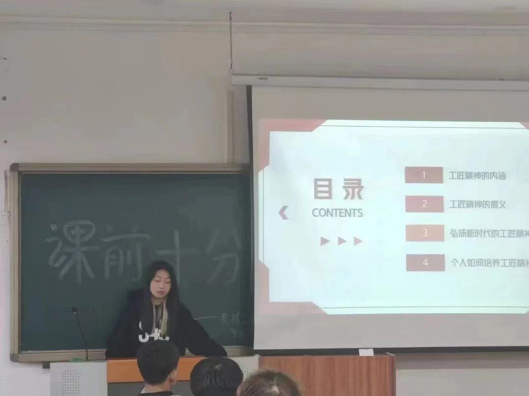 凡事都要脚踏实地去做,不驰于空想,不骛于虚声,而惟以求真的态度做踏实的工夫,这就是工匠精神。为了让同学们更好的了解和学习工匠精神,智能22301班于4月17日在二教206开展了“课前十分钟”活动。