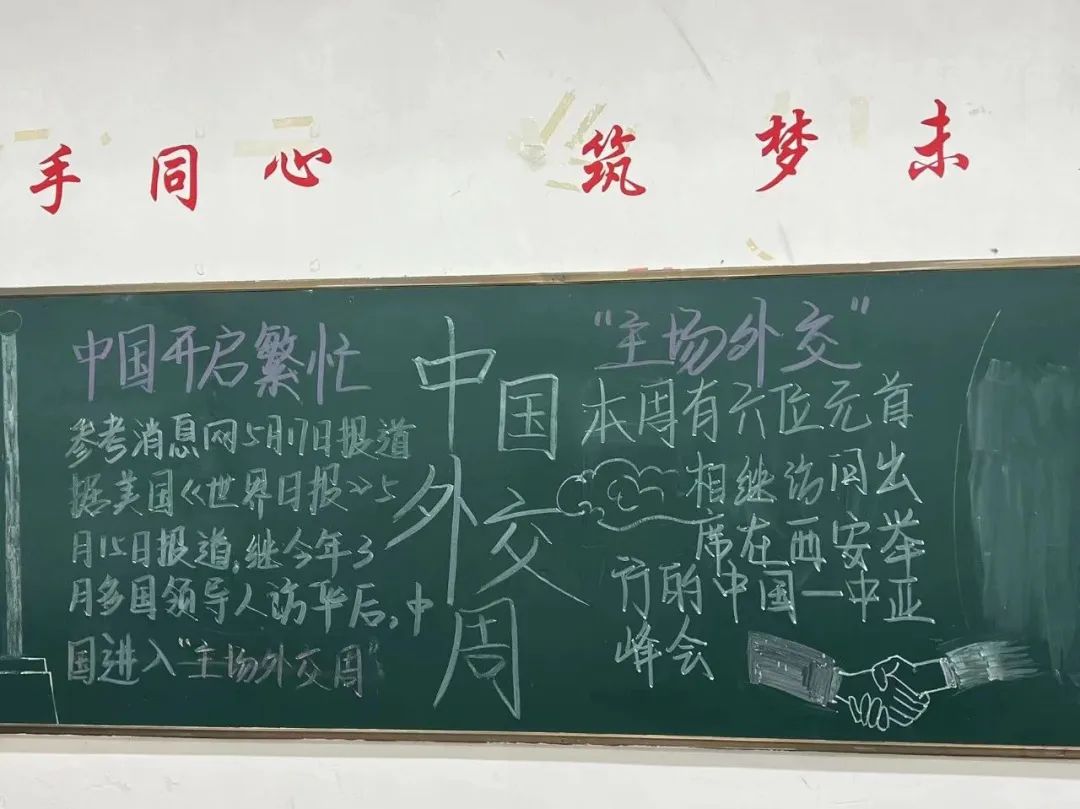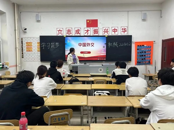 通过《参考消息》数字报,美国《世界日报》网站5月17日报道,继今年3月多国领导人访华后,中国进入“主场外交周”,本周有六国元首相继到访。机械22402班同学通过筑梦学习课堂活动深入了解此次新闻。据路透社5月15日报道,习近平主席15日在北京与厄立特里亚总统会谈时表示,发展好中厄关系对维护地区和平和国际公平正义具有重要意义。同学们根据板报以及PPT并结合中国官方媒体援引习近平主席的话,深刻明白中方愿同厄方“推进互利合作,实现共同发展”。中方鼓励和支持中资企业赴厄投资兴业,愿同厄方探讨加强基础设施建设、电信、农业、矿业、渔业等领域合作。