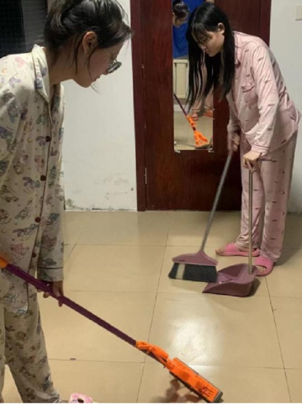 本次活动,重点针对寝室卫生死角、内务整理进行了细致的检查整改。活动中,各个寝室同学积极参与、分工协作,充分发扬了不怕脏、不怕累、不怕苦的精神,对寝室的地面、桌面、衣柜、床铺等进行了清洁和整理,积极整理衣物、书本等,整齐摆放归纳好桌面物品,同学们用实际行动为寝室环境贡献了自己的一份力量。在学校生活中宿舍就是我们的家,好的宿舍环境,可以陶冶同学们的情操,愉悦身心,使同学们们在劳累了一天之后,得到充分的休养生息,精神饱满地面对第二天的学习。清扫过程虽然持续的时间不长,但是同学们不怕脏和乐于奉献的精神深深的烙在我们的心中。宿舍是我家,清洁靠大家。打扫宿舍卫生,不仅展现出了同学们良好的精神风貌,同时加强了舍友的团结合作意识。古人言:“一屋不扫,何以扫天下”,一个干净明亮、舒适温馨的宿舍环境会带给我们轻松愉快的心情,使我们从繁忙的学习压力中得到暂时的解脱。
