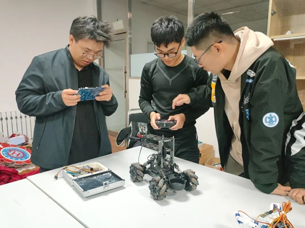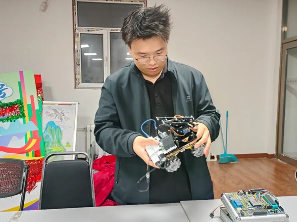 智能小车专区各小组围绕单片机技术多点发力,成员们分散在不同工位,有的以esp8266为核心搭建远程控制系统,分工编写代码、调试蓝牙与电机,有的专注多功能小车研发,组装万向轮、3D打印机械臂零件,反复测试夹取精度,还有的加装传感器调试避障与路径规划,大家频繁交流技巧,在协作中攻克难题,现场一派忙碌景象。