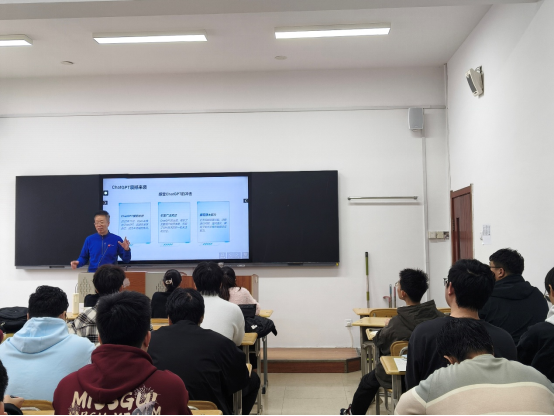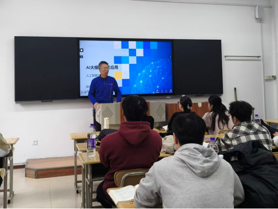 讲座伊始,袁教授从人工智能大模型的发展背景、核心特性切入,为师生梳理技术演进脉络,搭建起对AI大模型的整体认知框架,随后聚焦生成式人工智能,通过案例讲解探讨了生成式人工智能的根本性突破,解释了其如何从海量数据中学习并生成全新的、有意义的内容。在机器学习与深度学习模块,袁教授清晰地阐释了二者间的差异与关联,讲解了机器学习如何让计算机从数据中自动学习规律,而深度学习又如何利用复杂的神经网络模型,实现对图像、语音、文本等高维数据的深层特征提取。最后在互动部分,袁教授针对同学们的疑惑,进行了详细的解答与指导,不仅帮助同学们厘清了学习方向,还极大地拓宽了学生们的认知视野,激发其对专业的学习热情。