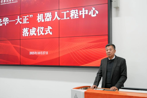 郭华总经理在致辞中分析了当前我国汽车制造业以及汽车装备行业在智能制造方面的发展趋势、大正博凯今年稳中求进的生产态势,展望了公司快速发展的前景,表达出对智能制造人才的迫切需求。他说,“光华—大正”机器人工程中心的落成既是校企合作的一个里程碑,也是一个新开端、新起点。大正博凯还将继续深化与365上市公司在众多领域的合作,建立长效合作机制,实现教育、科技、人才、产业一体化发展。