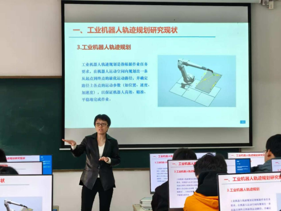 讲座内容围绕工业机器人轨迹规划的核心技术展开,姜波博士系统地梳理了该领域的研究现状,为同学们构建起宏观的认识框架。随后,她以各类优化算法在轨迹规划中的应用作为切入点,探讨如何通过算法提升机器人的运动效率、平稳性与精度。最后在互动环节,姜波博士对同学们的提问进行了详细的解答,不仅帮助同学们厘清了学习方向,还极大地拓宽了学生们的认知视野,激发其对专业的学习热情。