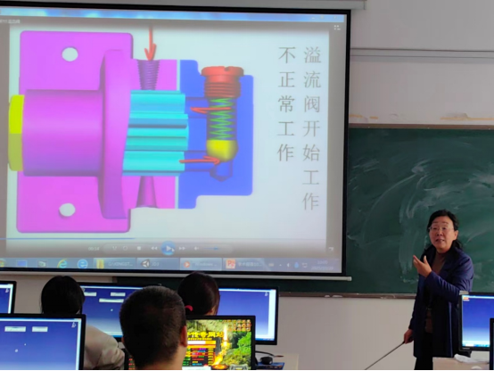 实践环节,谷教授以典型部件齿轮泵为案例,现场操作CATIA,完整演示“建模-分析-优化”全流程。针对师生关注的数据兼容难题,她提出“格式转换设置+三视图建模”组合方案,有效提升复杂零件建模效率。现场师生互动氛围浓厚。