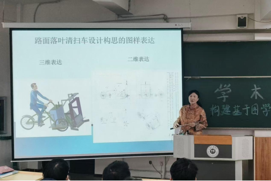讲座伊始,张教授指出画法几何是构建科学思维的重要载体,她从工程师科学思维的底层逻辑切入,结合画法几何典型教学案例,详解其中的逻辑推理与空间想象素质养成路径,并在这一过程中融入严谨的逻辑验证与批判性思考,从而夯实未来工程师科学思维的底层逻辑。随后,张教授明确了图学教育的五大启蒙目标,即塑造严谨的职业素质、建立工程全流程思维、认知现代设计技术、培养约束下创新能力、明晰工程图的沟通核心地位,并依托“理论学习+实操训练”的路径,将点、线、面投影,截交线与相贯线等知识点,转化为提升学生空间认知、逻辑拆解与实际问题解决能力,最终实现“知识——能力——素质”的进阶。