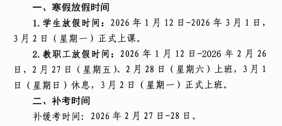 关于2025年寒假放假安排及补考时间安排