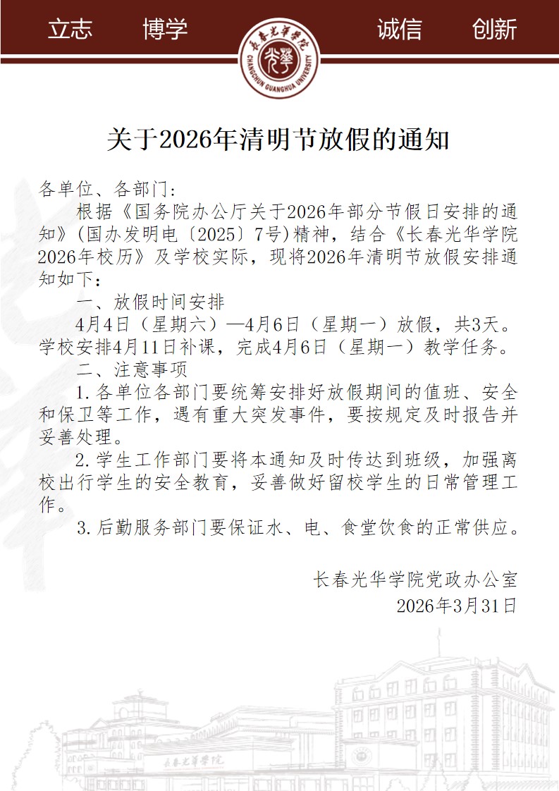 2026年清明节放假通知